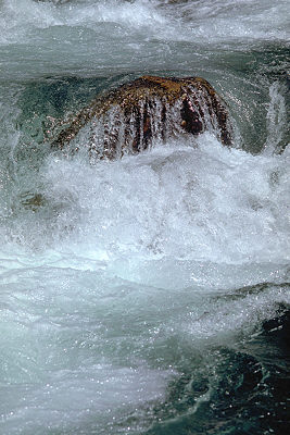 Granite boulders in the rivers of Yosemite have been there for ages, and many have become rounded in the process, to the point where the water now easily flows over and around them. This boulder, in Tuolumne Meadows, will probably look the same hundreds of years from now. Water flowing over rocks has an agelessness to it that makes it very soothing to watch.